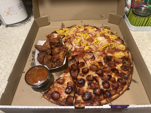 WOW! I cannot believe I didn’t try this place sooner. I had a few special requests and usually all delivery orders that my family places arrive incorrect, this was not the case this time. I ordered delivery on the “slice” app and left comments to have the pizza well done and the wings XXXXXX Crispy. As well as to add 5 extra blue cheeses which were not a selection on the menu and had to leave that in the comments. My pizza, wings and add-on’s came and it is great to say I was blown away from this relatively new pizza shop. Now, when I open the chicken wings they looked really dry like ZERO sauce on them (because their wasn’t) even though I ordered them with sauce. I called Purple Monster and expressed my concern and was told the following. We do not sauce the wings because or the way we package them (makes sense) and your sauce should be in the bottom of the bag with the extra blue cheeses. and low an behold it was I didn’t look to good for the sauce (guy problems).Now here’s the best part of them not putting the sauce on the wings and letting you do it yourself. We have all ordered chicken wings and have had them arrive to find them soggy and undercooked (not crispy). With Purple Monster this will not be a problem cause the wing sauce comes in a separate container and you can make them as dry or as saucy as you want. I am overly impressed with this place and really hope they will be around for a long time to come. WELL...