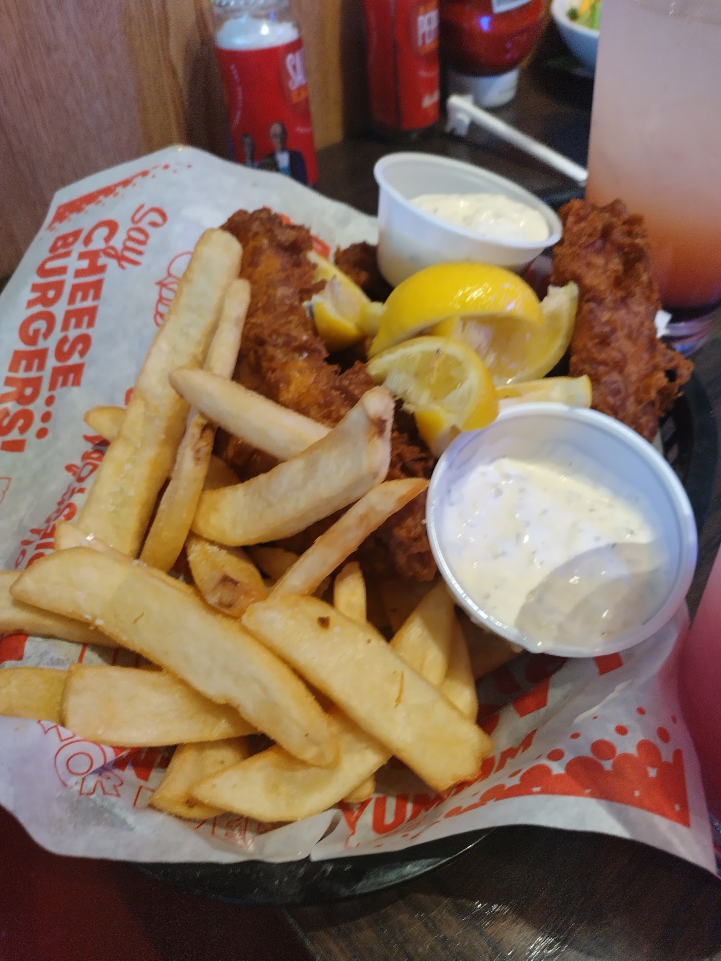 Read moreService was good. Food was NOT. Steak fries were the little pieces left in the bottom of the bin. The burger must have been precooked as it came out 5 minutes after ordering. All of the food was barely warm. I've eaten here many times over the years, but today was my last time. They may have saved a few minutes by precooking, and saved 50¢ by serving the dregs from the fry bin, but they lost a customer. Also, I hate using the table-top kiosks to pay. The servers pleasant personality is the only reason the rating is not a 1/5.