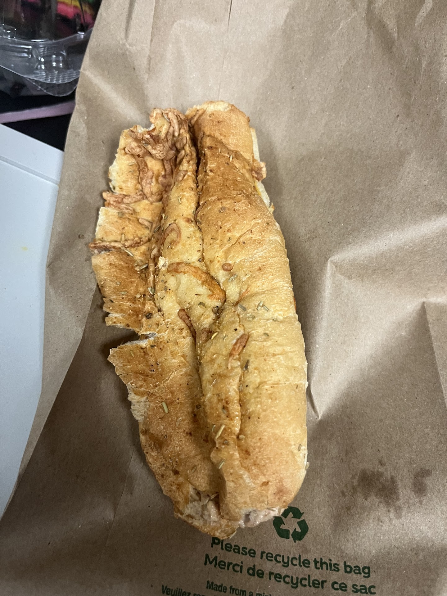 I ordered a simple turkey sub, but somehow, they still managed to mess it up. The bread was stale and tasted like it had been sitting out all day. The turkey slices were dry and had a weird, almost rubbery texture. The vegetables were not fresh—some of the lettuce was brown, the tomatoes were mushy, and the onions looked like they had been sitting in water for way too long.