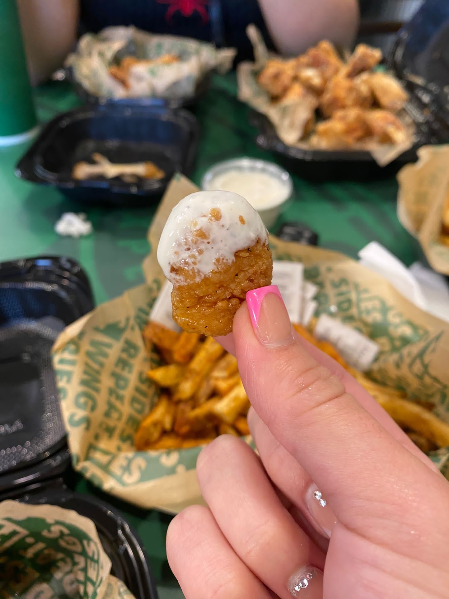 In the 45 minutes I spent watching this catastrophe, it became apparent Wingstop has only enough fryers to process one order at a time, and even that was slow if there were multiple fryer orders in it. The chains entire model is based on frying; How is it that only 1 order or can process at a time?