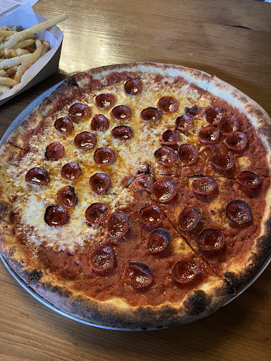 Talk about busy! This appears to be the happening spot on a Sat night. One thing that's pretty cool is that they allow kids in here. Not sure if there's a cut off time when it becomes adults only but I'm sure there is. Anyways, pizza. When it comes to food that's what they appear to be about and I'd have to say they do it well. We got the sausage pizza, one size only, price is decent for what you get. It's a good pizza and more filling than I though when I first saw it. We also got the kids chicken fingers for the nephew. I will say that their kids serving was quite large. We pay much all ended up eating from it. Next, the beer. I'm down with this places beer. I only got one pint and it was the Autumn Blaze. I thoroughly enjoyed this beer. I'm a sucker for pumpkin beers and though this was one of the most didn't pumpkin flavors in a pumpkin beer I've had, and I mean subtle, it was a well rounded beer. I honestly wanted a second it to definitely taste what else they had to offer but just didn't have the time. I saw a super hazy on the list and was torn between the two b/c I love me a hazy as well. Seating in this place is aight. It's seat yourself. There's hella picnic table style seating like Oktoberfest but when you start getting more and more larger ppl in there the ability to get around diminishes pretty quickly. It is loud in there and I do mean loud. At times it was difficult to hold a conversion across the table. They have hella tv's. Gotta order everything at the bar and pickup your food yourself which is when that comment about it being difficult to maneuver comes in play. But everyone was nice and would move when you yelled "excuse me!" There appeared to be a whole other section for searing that seemed like it would of been a a lot quieter but it was taken up by a private party so we sat in the zoo. Service is quick. Our food was ready within minutes of ordering. They are fast and efficient. Definitely want to come back to try more of their...