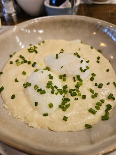 The Poached Eggs over Creamy Parmesan Polenta. A total homerun with perfectly poached eggs that delivered the sexy saucy yolks when broken open.