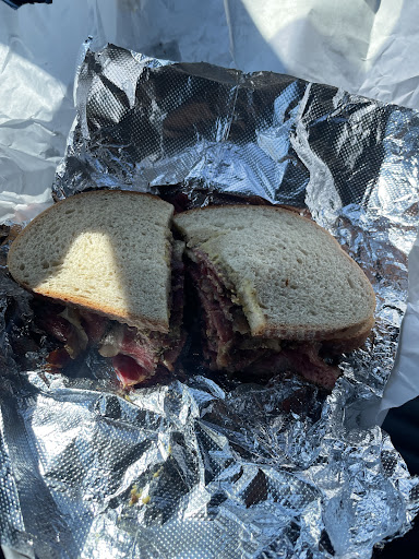Read moreMy wife and I stopped in for lunch 12/27, specifically for pastrami sandwiches. For a deli which touts it's pastrami quality, we were extremely disappointed. We ordered the "traditional" pastrami, which is the pastrami with the fat. The waitress appeared to very disinterested in her job, but was not rude. Just slow and wearing a sour look. We ordered our sandwich on rye, with sour kraut. The soda fountain was down, we were told, so unlimited soda for$3.50 was not available. But a single can was, for $2.50. We ordered a side of onion rings, which came very over done, almost blackened. And room temperature. The sandwich arrived and had maybe one tablespoon sized dollop of kraut, not nearly enough to even cover the meat, nevermind meet the standard. The pastrami was fatty, which is as it should be. But it was also very grizzely. So much so that taking a single bite of the sandwich was impossible without getting into a tug of war with the rest of it. Eventually, we tried utensils, but it was hopeless. $38...