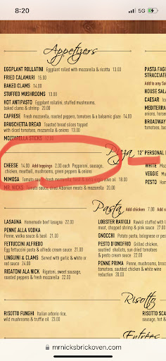 Read moreFirst and foremost I wish to say I use to love Mr nicks not sure if due to covid or what but there food doesn't taste as as and the customer service is the worse I've ever experienced. I placed order it didn't come the way we instructed for it to come first off thrn when I went to bite a piece of hair was in my pizza so we did what any normal customer woukd do called ask for refund he asked to replace the pizza however at this point I don't don't to eat the food finding hair in it right ? Instead of giving us back the money and apologizing the man working decided to tell me how people who live where I live always complaining what does where I live have to do with the hair found in my pizza?? Anyway he refused to come get the food to even see what we are saying about we brought he pizza back ourselves and didn't even ask for refund at this point we weren't satisfied so once leaving we called store back told them they lost customers do u know what he accused me of doing ? Putting my own hair in the food lol now why would we do that? We gained nothing from this experience no food nor money back so what was the point of us putting hair into the food ? Not good to make accusations of that nature towards customers because hair somehow was found in our food they should be ashamed of themselves for even saying something so terrible I suggest...