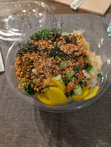 I love this place. I've been there many times. The owner and the people that work there. All very friendly and super nice. I find that the quality of food is very good and that the food is fresh. I believe that the tuna and the salmon are from a frozen product. It's great variety of different toppings and stuff that you can create your own bowls. I found that they large bowl is really large and I have a fairly large appetite. So I stick with a small unless I want to take another meal home with me. Two things that I would like to see change would be a better selection of beverages. Everything seems to be sort of on the very sweet side. The other is that they don't recycle and they use throw away paper. French fry bowls to mix each person's water and then they throw them out. It seems very wasteful and not cost effective. If they use some stainless steel bowls s had enough of them That would be more echo friendly and less expensive for them. I look forward to the next time going there. And I wish them all...