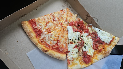 I got 1 regular 1 Margherita slice. The regular was ok. dough was a bit chewy. Not crisp. However the slice has those 3 qualities of a ny slice. Consistency good crust and golden oil. I would bake it a bit longer.