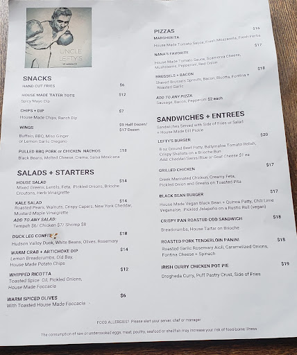 So if you want to just grab a quick beer at the bar or if you're looking for a dining experience that combines exceptional food, friendly service, and a welcoming atmosphere, look no further than Uncle Lefty’s. It's more than just a restaurant – it's a home...