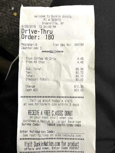 Stopped by this morning at Dunkin’ in Greenville, NY thinking I’d grab a refreshing iced tea and a quick bite to kickstart the day. The iced tea? Fine. It’s iced tea—you’d have to go out of your way to mess that up. So, congrats on meeting the bare minimum, Dunkin’.