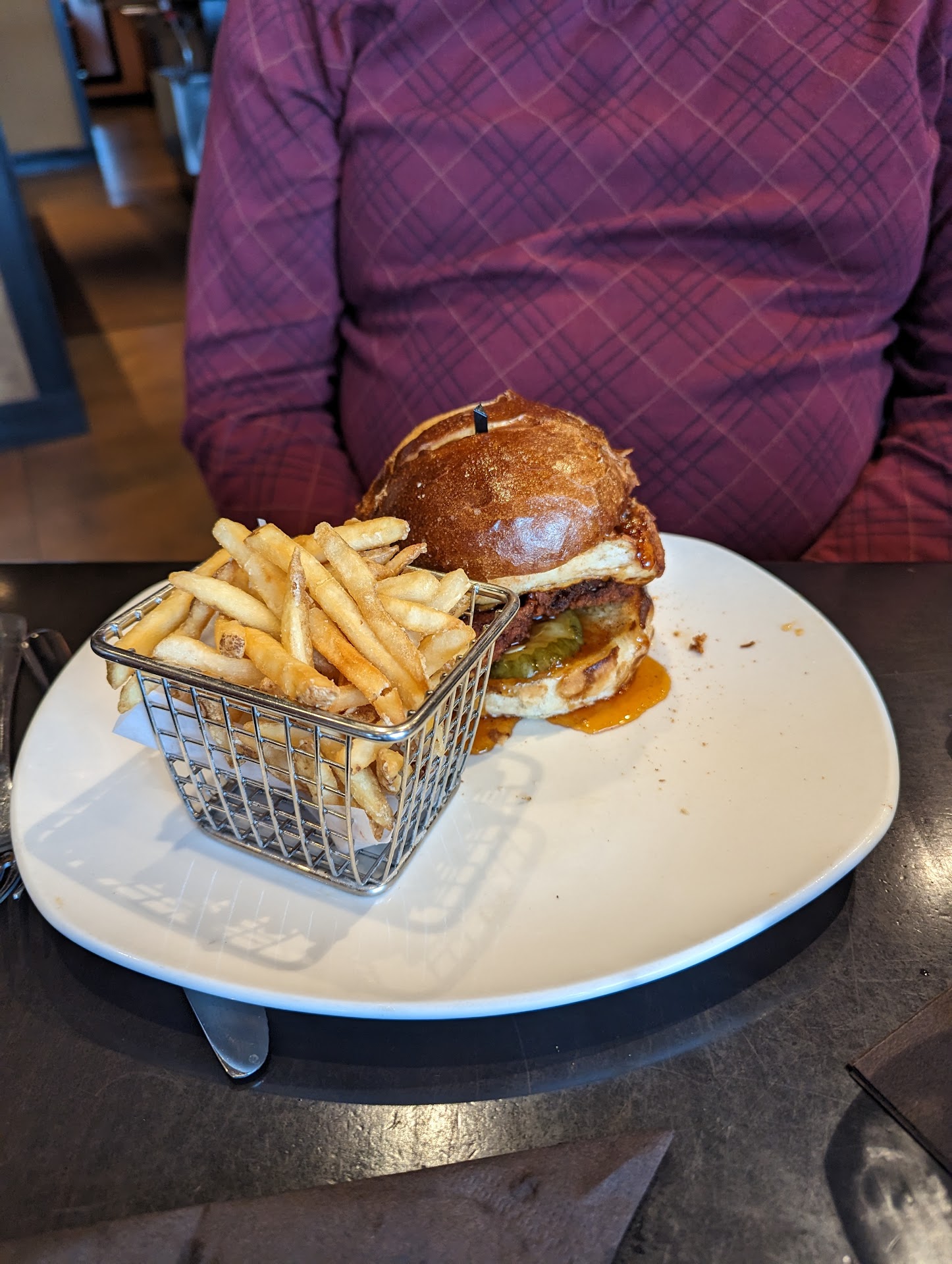 Ā Ā Ā Read moreWe went to 110 Grill tonight at the Crossgates Mall and had an absolutely fantastic meal! Wish I had gotta pictures but unfortunately not. Regardless tho as soon as I walked in we were taken care of right away. I have Celiacs and for the First time ever when I walked into a restaurant the very nice hostess asked if anyone needed a gluten free menu. That right that made me feel awesome bc as I said thatās never happened before. Don was our server and I have to be honest he was amazing! One of the most attentive servers we have ever had. Anything we needed he was immediately on top of it! We didnāt have to ask for a thing. The food was Deeelicous!! The fact that I had my own menu to choose from with an excellent array of choices to browseā¦.truly gave me such a great feeling. They take excellent care of their customers and are extremely careful with those who have food allergies. It was just Awesome! Don and all the staff that stopped by were very kind and you could really feel that care they had for their jobs. Don is the man and I completely recommend you ask for him when going! You will not regret his service or the food! We started off with the BBQ Chicken Nacos which were so good!! My fiancĆ© couldnāt stop munching on them š The kids had the pasta and French fries and also a cheeseburger with fries which the both tore up! Then my fiancĆ© had the fish and chips which she loved! I had the hot honey chicken sandwich which was So Good!!! My whole meal was gluten free and even came out with a āallergyā toothpick to make sure everyone knew to be careful. We were all so pleased to go here tonight. It was our first time and certainly will not be the last! Canāt wait to be back! Thanks to Don and all the amazing staff for...