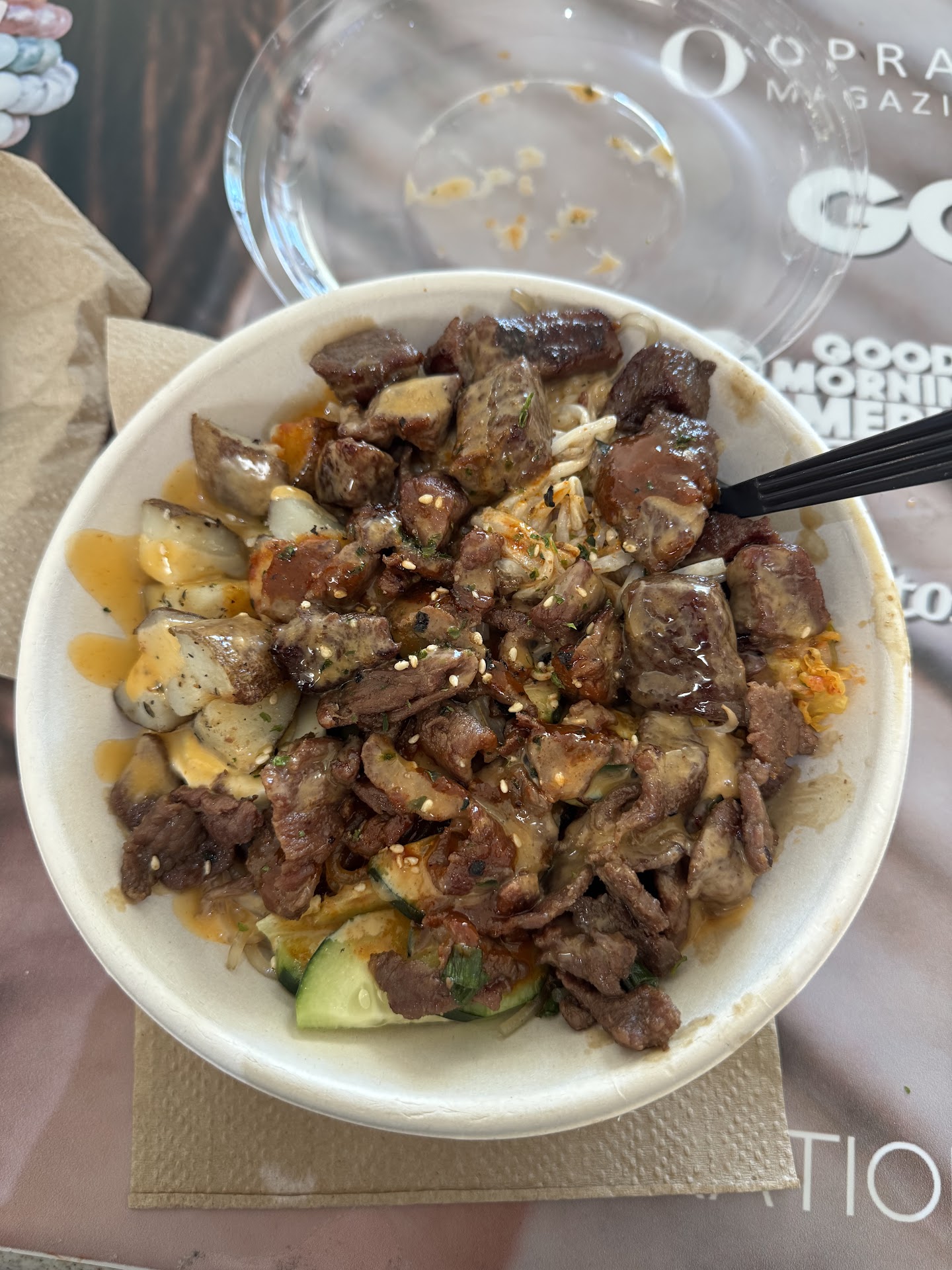 Outstanding!! I got a noodle bowl with cheese, kimchi, carrots, cucumber, tomatoes, and seaweed salad! I put bulgogi beef on it, as well as broccoli, black beans, and spicy mayo! It is absolutely delectable!!