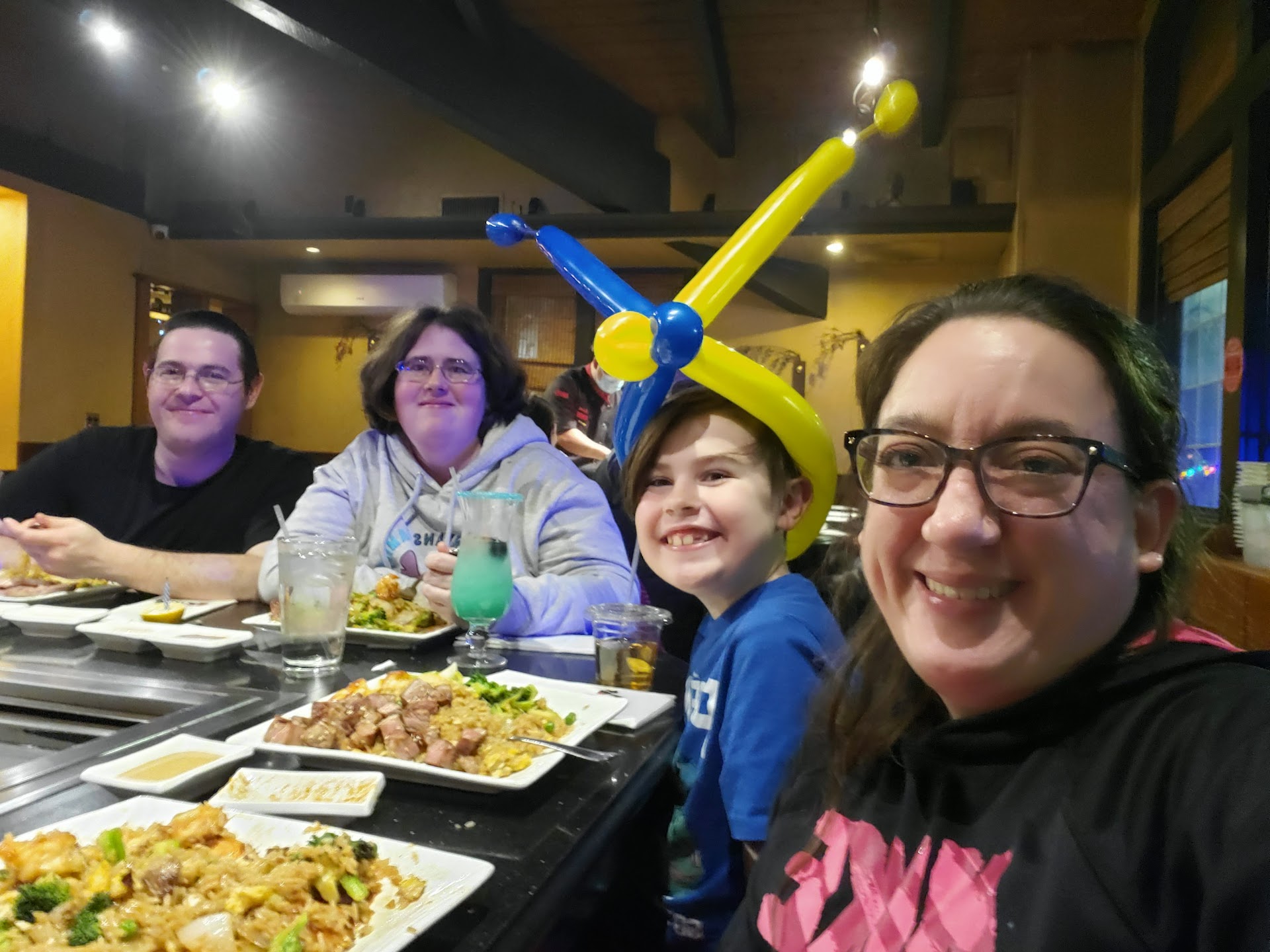 Read moreThis is a hibachi-style restaurant. You sit around a giant griddle, a waitress will take your drink orders, and then what you want to eat. Everybody pretty much orders something that's going to be cooked on the large griddle in front of you. That is why most people come here. I had a dish that was a mixture of scallops, shrimp, steak, and lobster. You have your choice of fried rice or noodles. These are all flavored with various mixtures of flavored liquids. The noodles were definitely tasty. The kids in our group were super amused. Because the cooking is done quite theatrically, with large fires at the very beginning before they start cooking anything, a lot of spatula, tapping, and flipping, flipping zucchini pieces into people's open mouths, and that sort of thing. So part of eating here is that show. If you like that sort of thing, this is definitely your place. All of the proteins that were cooked on the hibachi grill in front of us were actually cooked quite perfectly. The scallops were perfectly cooked, the steak was perfectly cooked, same with the lobster, etc. And they have a good variety to choose from. If you have a somewhat picky eater, they can just get edamame and white rice for example. They have a nice selection of sakes, but they come in a small bottle, so it's a little bit too much for a single person. They also have a number of cocktails, and they are definitely on the sweet and tropical side.