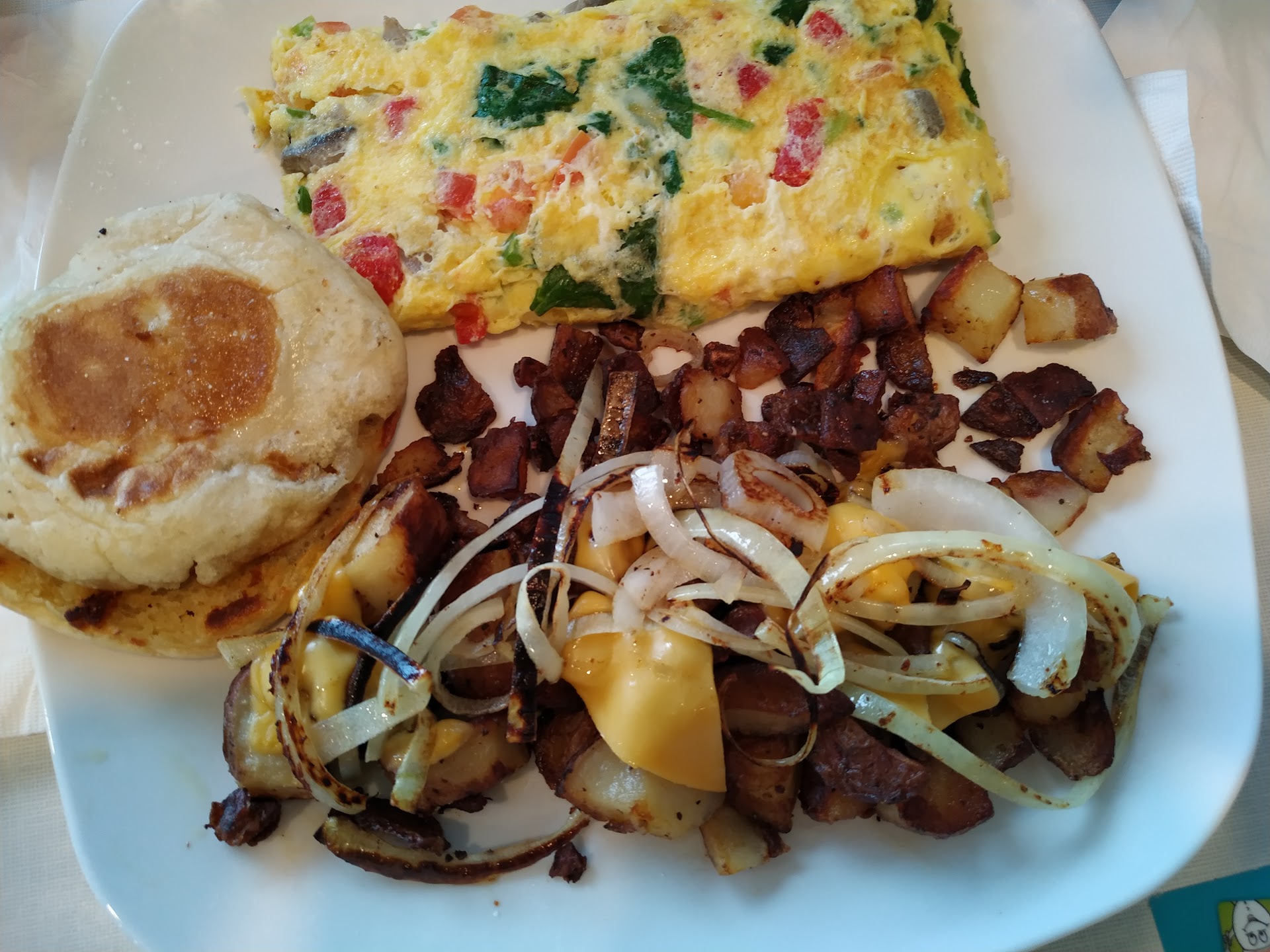 The B&G omelette was good but I have to admit, I probably wouldn't order it again. I choose it because, for the price, it offered an omelette with ham, sausage, bacon, and cheese and included a B&G along with two sides. The B&G is served on top of/or in the omelette which I found odd. Next time I'll opt for the Biscuits Gone Wild which offers the same as the omelette for $1 cheaper and just one side.