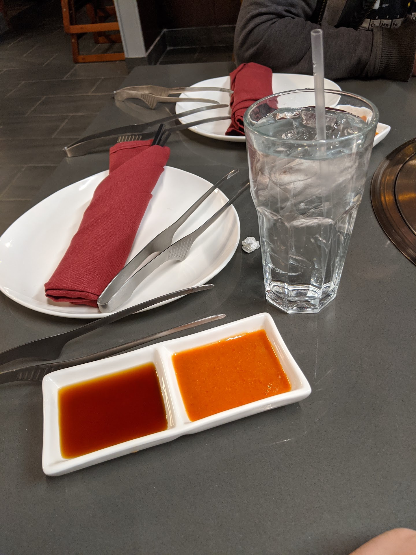 When we first arrived, she asked if we’d been there before. We said no. In spite of this, she did nothing to make sure we would know how to cook on the Korean bbq grill at the table. Also, when she did bring napkins, she placed then right next to the grill, which was still on with an active fire.