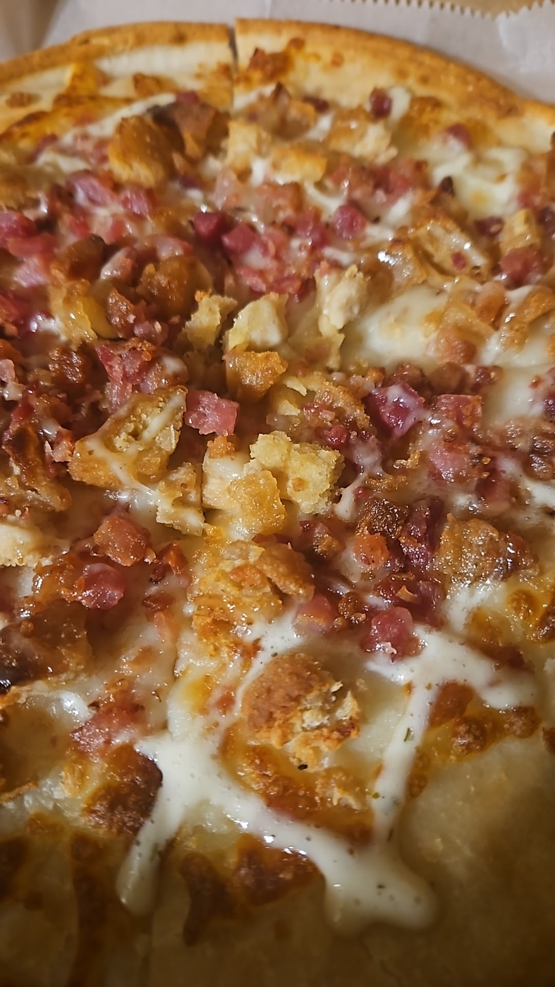 Large Cobb pizza. Man. Shame. Extra cheese? Not on that pie you sold me. Cobb? Maybe back to culinary school. But easy $ for you right?!