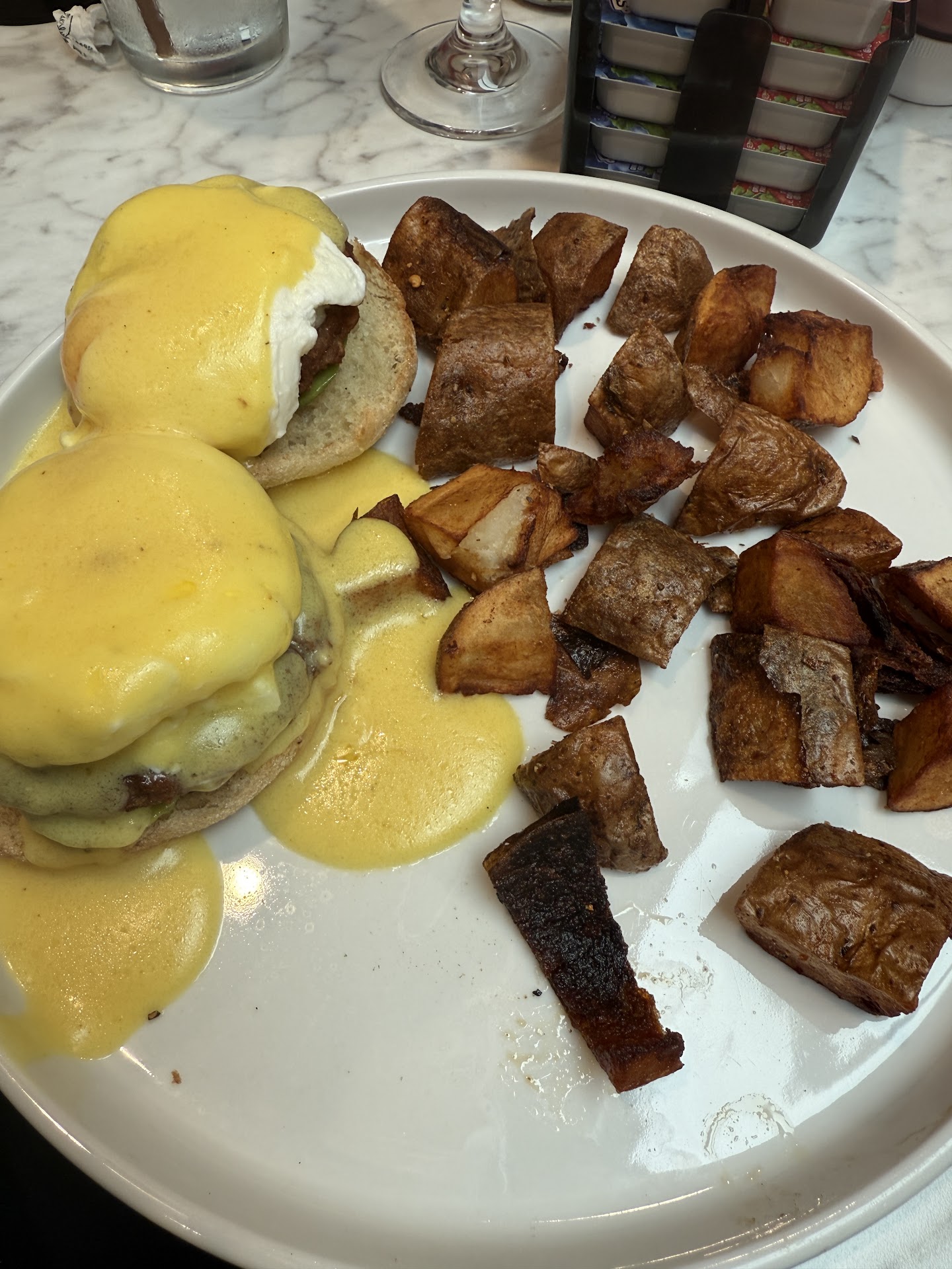 Upon informing the waitress, she took the items back, but upon their return, only the eggs were warm as they had been reheated, leading to my mother's husband's meal now having overcooked yolks. Unwilling to persist with the subpar experience, he had his dish removed from the bill.