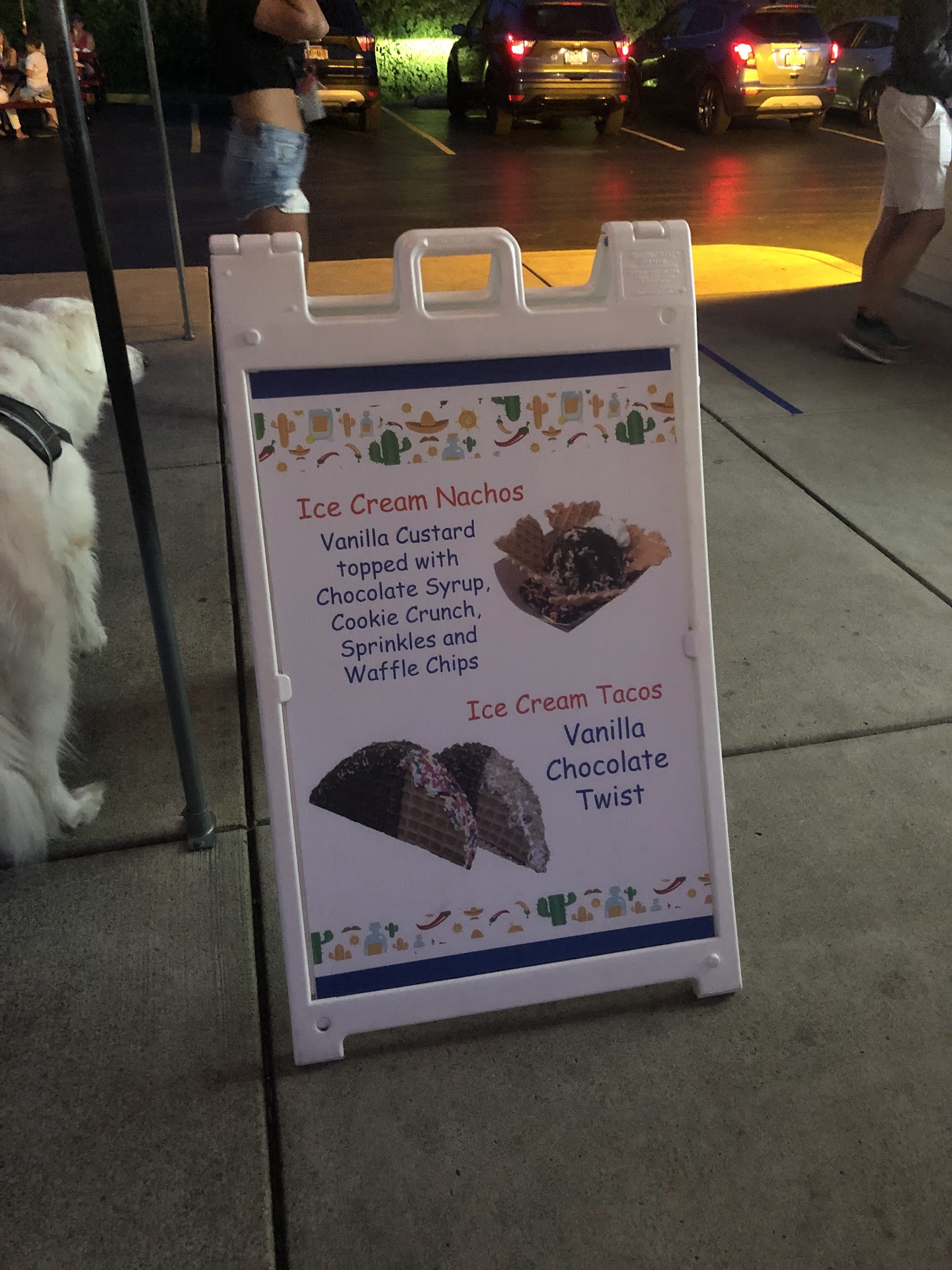 2 scoops has all the standard ice cream favorites along with a ton of novelty items. They have hard ice cream, custard, dole whip and different flavors throughout the season. In addition they things like ice cream nachos, ice cream tacos, pop tart ice cream sandwiches, ice cream sandwiches with the new/ rotating custard flavor, ice cream cakes and cotton candy.