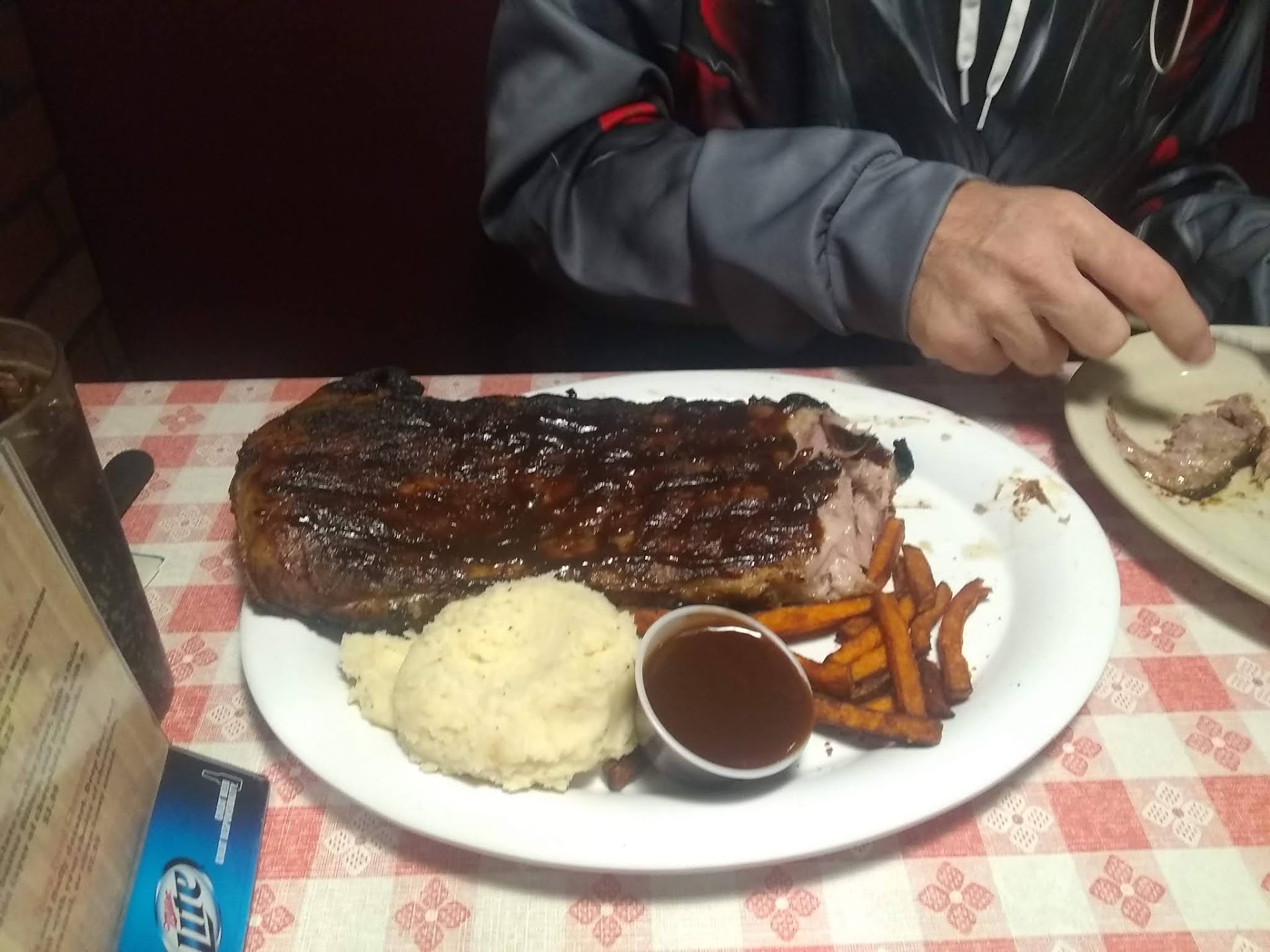 The only bright spot was their BBQ sauce. It was the only thing that had any smoke flavor. It was not too sweet and nice. I would actually purchase it. Nice job on the sauce, your stars are based on it.