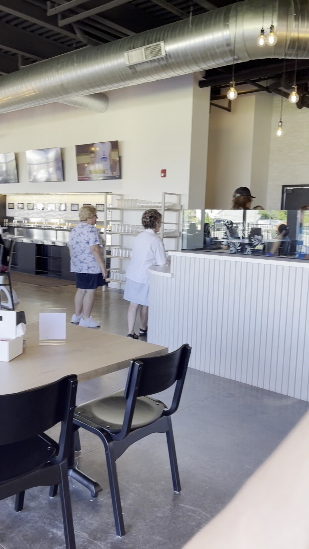 We settled on the second level at the bar for our visit. The bartenders were truly great and welcoming. Plenty of options to choose from. The décor is trendy and bright. The floor to ceiling windows offer great views of the lake. The food that went by looked tasty and hopefully our next visit will allow us to spend more time to try it out.