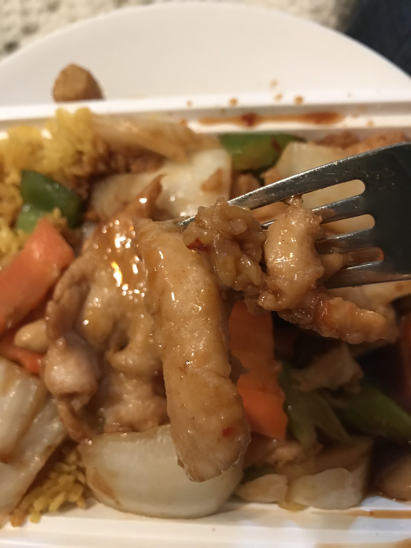 Ā Ā Ā Read moreIm so so sorry but i read all the good reviews and i donāt understand. When I chew on the chicken in the Kung pow I feel like Iām chewing on a warm piece of gum⦠Obviously this is all frozen right up until the moment itās cooked. The dude behind the counter was not the friendliest I felt like I was putting him out Iām not eating the rest of this because Iām not sure why the chicken is so chewy or if this is even chicken to begin withā¦? $11.00 of chewy chicken weirdness. No big deal I guess but I also asked for the vegetable lo mein and ended up with plain rice not sure where the lines got crossed I was the only one in the whole place. Iād give one star but I donāt want to look like him too much auto place with everyone else who thinks this is good Chinese food. Iām even nervous to keep eating it but I donāt want to waste $11. And the chicken taste like it was soaked in olive oil or something and then frozen the shininess you see in the picture is weird...