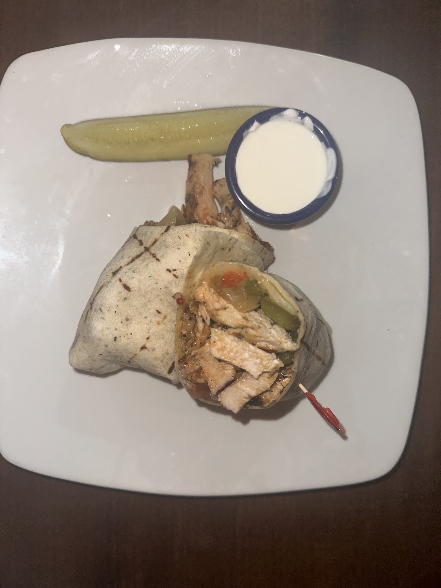 I got the chicken fajita wrap and was a bit disappointed. The plain chicken had a little char flavor…but it didn’t taste fresh…almost like frozen chicken thrown on a grill? I could be wrong… it I didn’t get the fresh taste from It. The peppers and onions were either frozen from a bag or they cook them far earlier in the day and add them quickly at the end when they cook the chicken as they were very mushy. I don’t think mine even had any cheese in it. The flavor was meh.