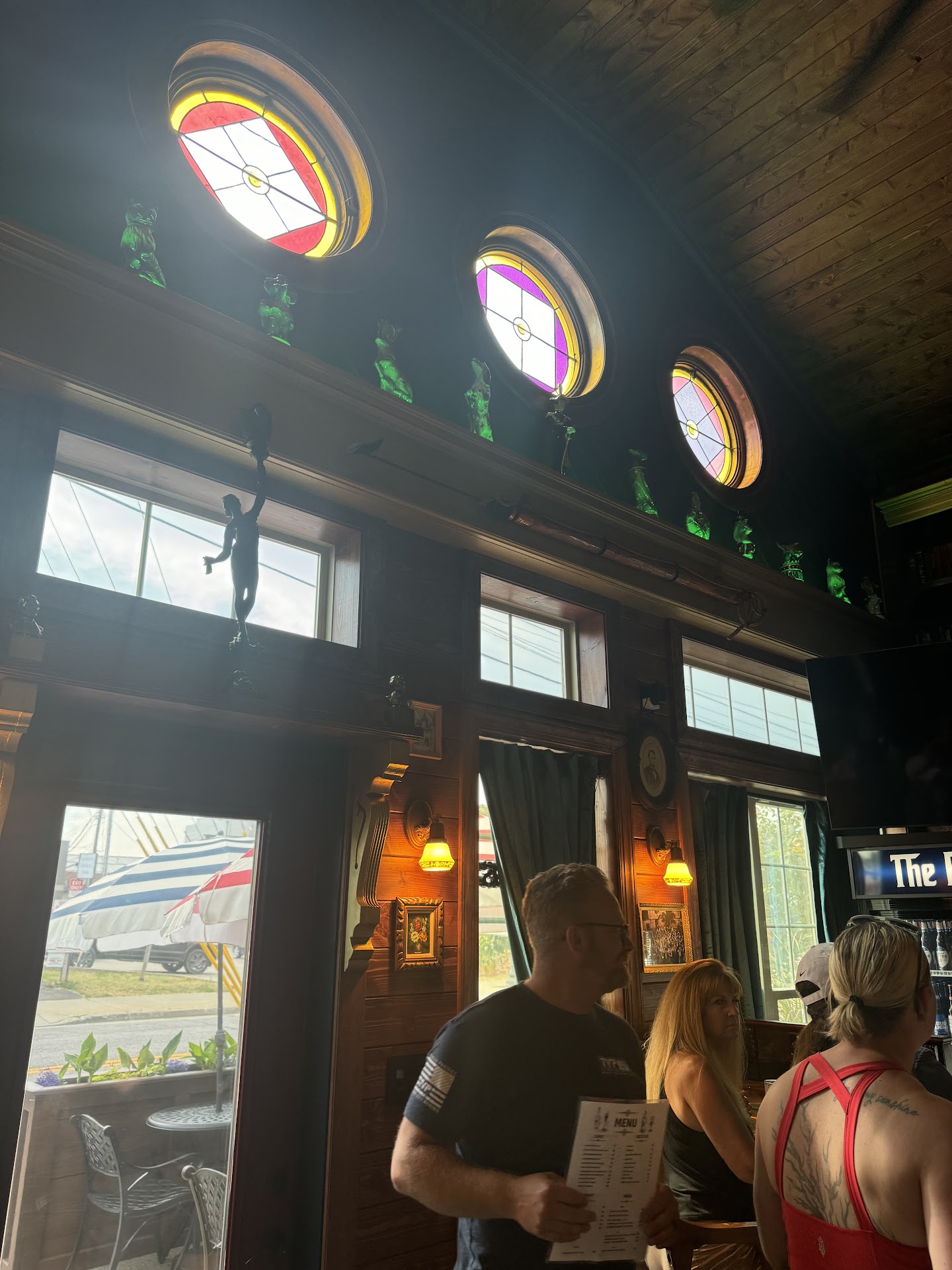 But honestly, it’s the atmosphere that gets you. Walking in feels like stepping into your cool uncle’s vintage library or a cozy, lived-in den where the drinks just happen to be amazing. Every corner has something interesting to look at—quirky statues, stained glass windows, vintage books, art, and some incredibly cute printed wallpaper that ties it all together.