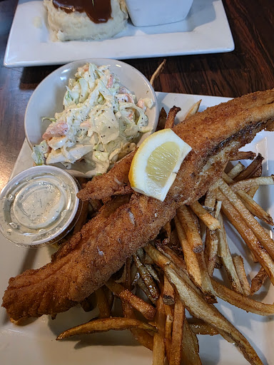 Very lovely waitress polite, fast service, and attentive. Food was very good. Deep fried cheese curds were a delight but very small portion for the price, Green beans were garlic forward, mashed potatoes and gravy wonderful, stake was under cooked but still delicious, fish cooked to perfection tarter sauce had a heavy hand on the dill weed and fries were good. Salad was amazingly fresh and the cucumbers tasted like they were garden fresh. All and all a wonderful meal. A bit cold inside but appreciate the great...