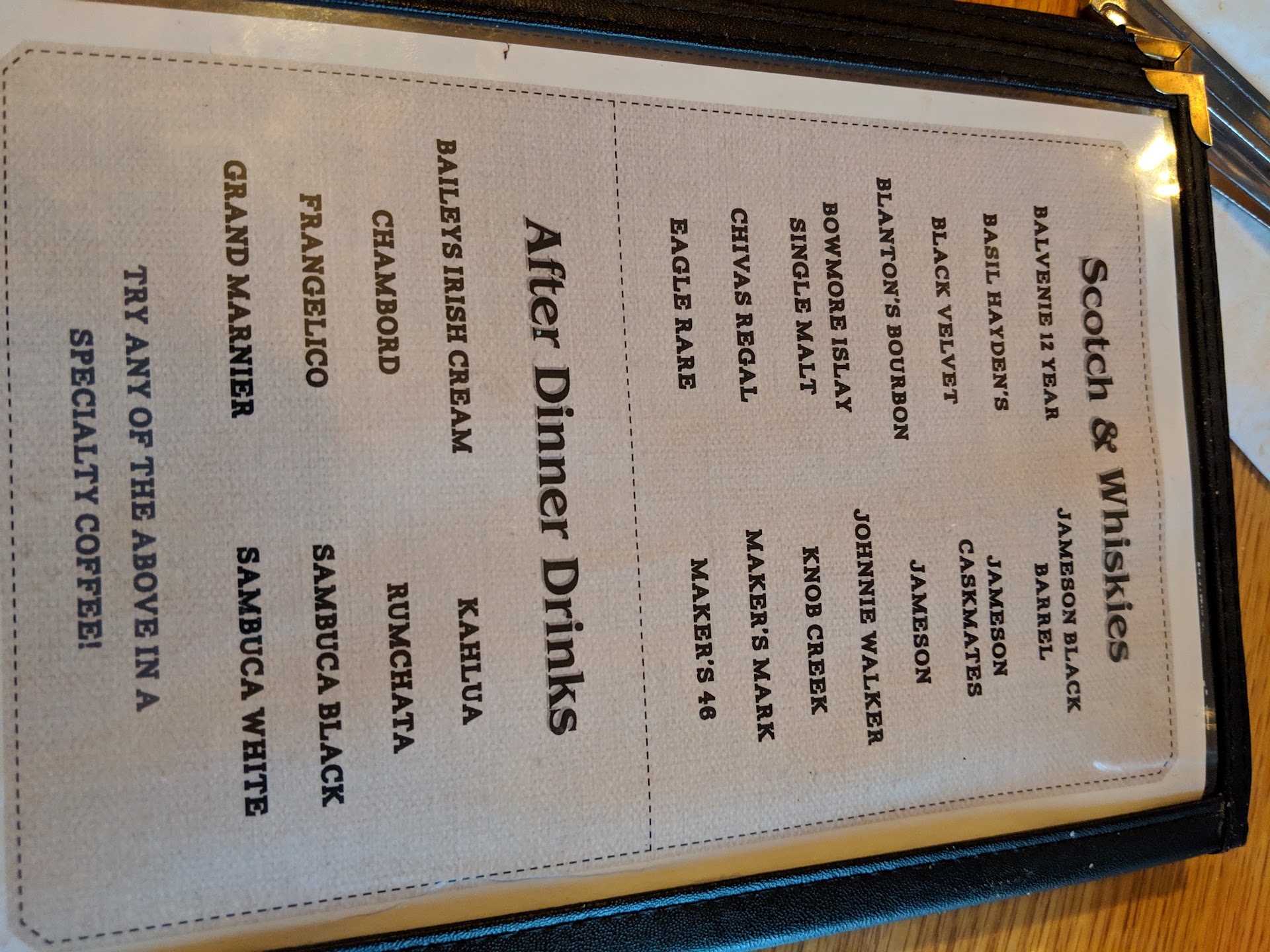 Read moreWife and I arrived at a very empty bar and asked for a beer/wine menu. Bartender handed us that menu and said "we do have some stuff that is not on the menu"....... AND THEN WALKED AWAY WITHOUT TELLING US WHAT THOSE THINGS WERE!!!! Are you kidding me?