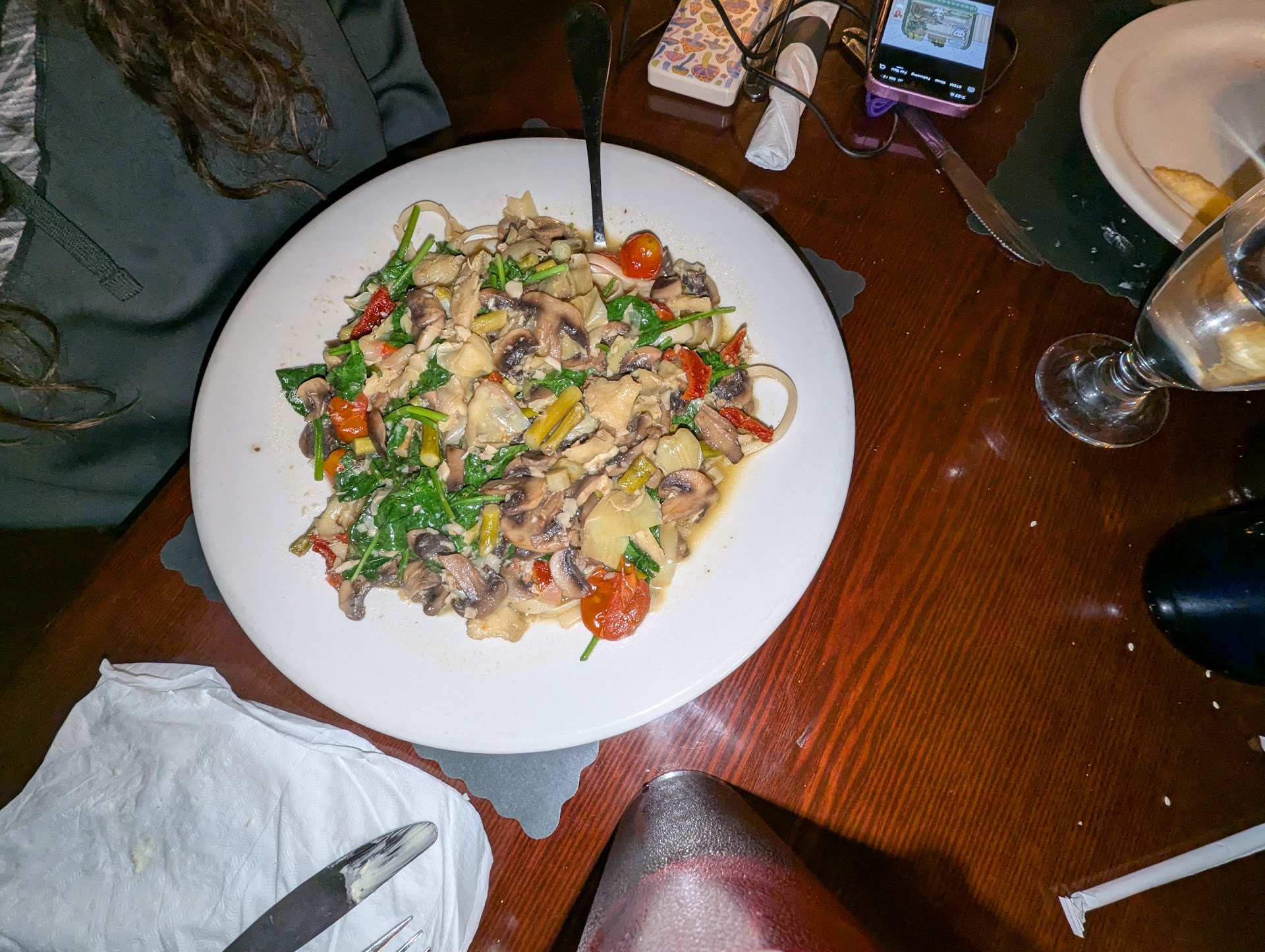 VISIT #2 The second time at Tavern 19 my wife and I both ordered the chicken parm dinner. The sauce was really gross, the pasta was soggy and over cooked, but the portion size of the chicken itself wasn't horrible. However, the service was terrible and the inside of the restaurant (from what we could see, including our own table) was pretty filthy. We were offered no refills on our beverages and after waiting about 25 minutes the waitress finally came to the table with our bill. Again, we paid the full bill (using groupon #2) and left disappointed, thirsty, and a bit hungry.
