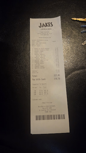 Read moreWe just celebrated my Mother-in-law's 80th birthday party in the banquet room at Jake's, and if I could give more stars, I would. The room is huge and beautiful and was set up before we arrived to finish prepping for the guests. Jake paid careful attention to all the details and requests, and made planning an event with 60 people so easy. The food was amazing with plenty to go around and take home, and the compliments on the food were constant throughout the party and after. Heather and Chelsea were rock stars and never skipped a beat! The party could not have gone more smoothly, and we couldn't have done that without them. Thank you to everyone at Jake's for giving my mother-in-law a day she will never forget. Book them for your next event, you will be...