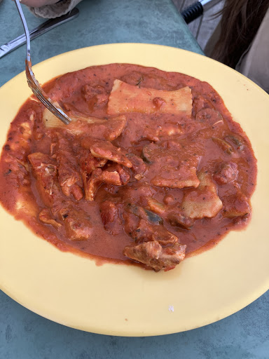 We all sat with empty drinks for awhile. Her salad with her scampi was small and on a plate. The dressing came out in a little plastic cup which was weird. Salad did not come in a bowl. The shrimp in the scampi was good, the noodles were bland.