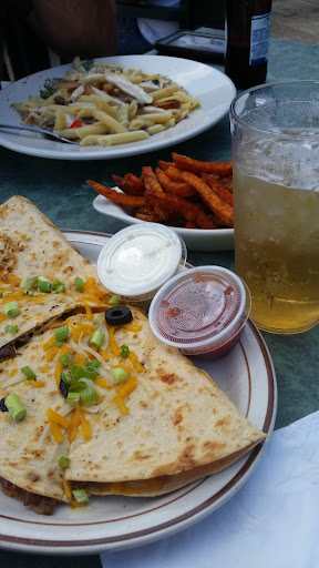 I got the philly steak sandwich, the fries were good and the beans were good. The meat was devoid of flavor and the bread was just Walmart bread, falling apart, and not good. Entire sandwich was just "meh". The meal cost us $67 for a bowl of soup, kids meal, 2 adult meals and an appetizer. Then we tipped $7 for some reason. Really over priced, happy that I had the experience with my girlfriend and son but definitely a...
