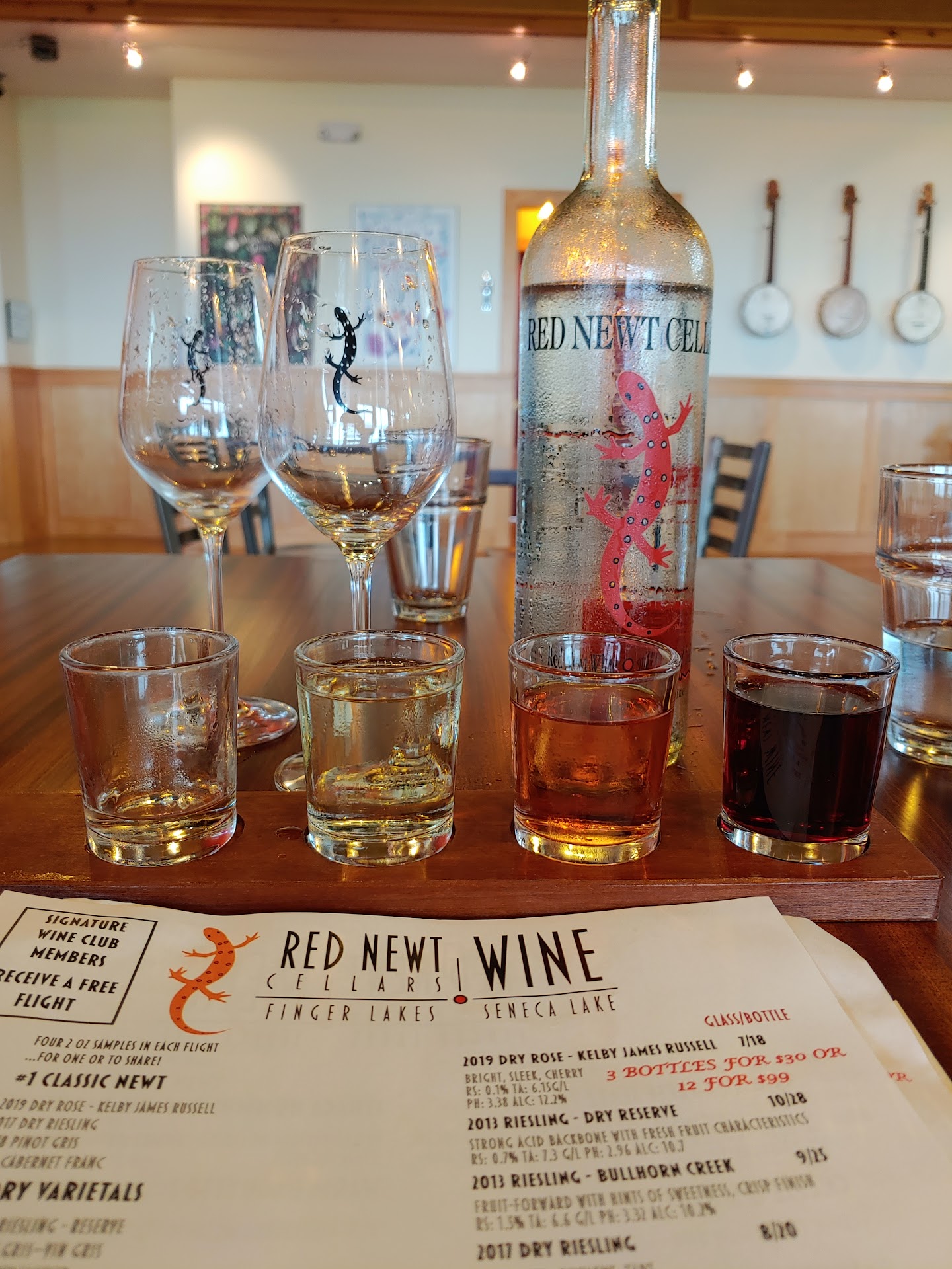Read moreIt is difficult for us to properly characterize Red Newt. We are sure the facility, at one time, was THE place to be. The staff are all very comfortable with one another and with customers, know the place and their product inside and out, but aesthetics have suffered simply due to age and wear. As for the wines, we felt they were a bit of a mixed bag. There are solid stylistic elements at play in many of the Rieslings, though many of the drier offerings straddled the fine line that divides "classic" from "ascetic." Old world-like tension and austere minerality could be found in these wines. However, some of the harvest and vinification choices made to achieve this have smothered the lovely orange, tangerine, clementine, and floral qualities that Seneca Lake so often imparts to her Rieslings. We ultimately did not find this style compelling, though some may. An interesting experience, but Red Newt is not high on our...