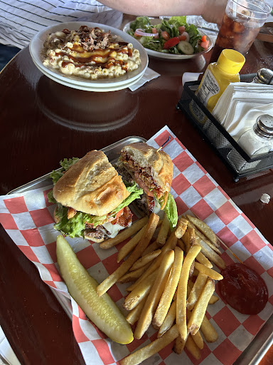 Other items were the Que-Ban- pulled pork sandwich w/mustard, Swiss cheese, ham, pickles and tomato slices. Just the Pig Mac and cheese topped with pulled pork and pork belly bites and bacon. The Mac has some high quality cheeses. The Carolina BBQ sandwich full of meat and just the right amount of slaw and dressing.