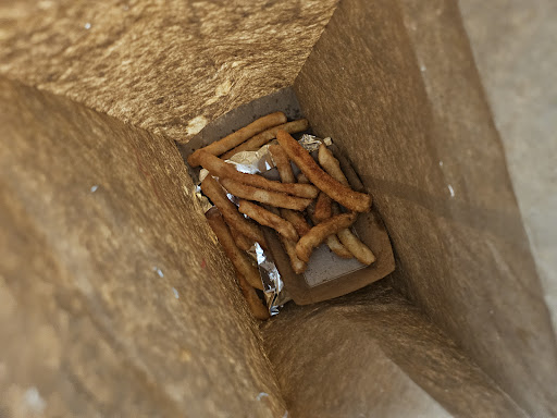 Just a thought THE FRIES SHOULD COME IN A CONTAINER with A LID or CLOSED FOOD BOX. SOHEIL JUST PUT THE NAPKINS ON TOP OF THE FRIES 🤬🤬😤😤