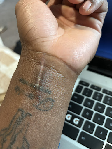 On January 11th, I'd went in like a normal delivery. They had told me the customers food wasn't ready and to have a seat until it is. I went to go sit down on their red chair and as I put my hand on the chair to sit down, my hand had slipped and my wrist had been cut by an exposed staple they have on their chair leaving a scar on my wrist and messing up part of my tattoo. The staff had been helpful at getting it cleaned and wrapped up which I appreciate them for. I wasn't overly concerned about the cut because cuts heal but nonetheless still a safety hazard that should be taken care of ASAP.