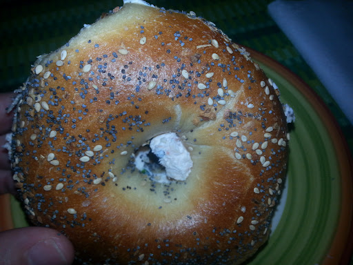That being said, the bagels were awesome! I had a plain, he had an everything. The everything bagel was seasoned on both sides.