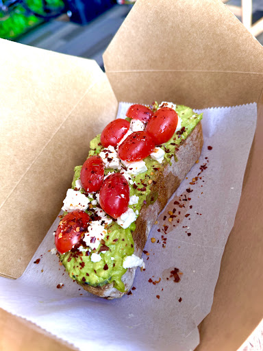 Mediterranean toast = 3/5 big portion sized. Definitely getting your moneys worth. Good taste. I wasnât a fan of the bread selection thatâs given to me. It was very thick so every bite you take the avacado goes all over you.
