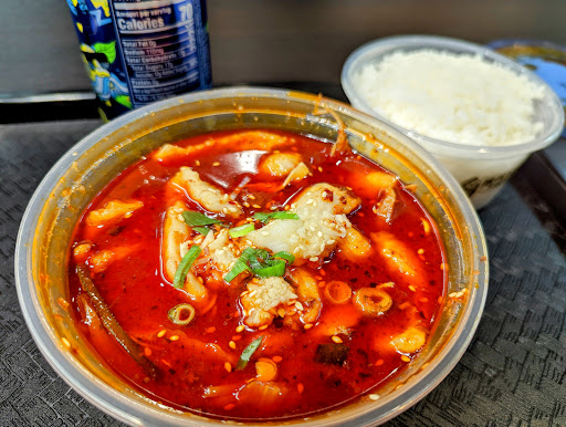 Sauerkraut chinese fish. This cuisine is generally for fresh of the boat Chinese people. But over the last few years, it has steadily gained popularity amongst non Chinese and even non Asians. I can't even explain what the taste is like aside from it being maybe lemongrass and spicy at the same time. The bowl is filled with random veggies, spices, and, of course, your choice of fish or even duck blood. This spot is located inside the food court of 99 Ranch Market. The prices are reasonable ($12.95), and the employees are nice. They also serve Malatang. Those that don't know, look it up. When you pay with cash, you get a free drink (yellow...