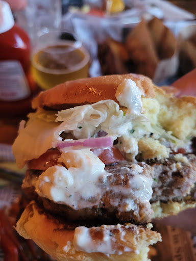 Read moreThis place has a huge positive vibe. Yes, there is alot of testerone, bit if you come here with friends, or you meet people at the bar, you will certainly be upbeat. The place is a comfort food place. Burgers, fries, tater tots, chicken, cheese, all the ingredients to make you full and happy while you are downing a pint of beer! The parking lot can hold about 20 to 25 cars, and it is next to LIRR tracks for added parking in the area. The place is huge to say the least. Once you wallk past the outdoor drinking area, a door opens up and there are 3 genfer neurral bathrooms on the left before you come up to the hosts podium. The host greeted us with such a friendly smile, you felt instantly welcomed. As you walk in, the long bar on the left has enough room to be at least 6 to 7 people deep from the bar. They have brews for all tastes. The wait staff will gladly offer a sample of the draft beers they have. They also have an extensive bottle and can list. They even have 3 types of ciders to try: 1 draft and 2 in the cans.you can find a high table to the right or continue straight to a slightly lower vllume of excited shouts when you see the patrons watching the several tv screens of football on a Sunday evening. Unfortunately, they ran out of tacos and 1 of the ciders my friend ordered, but we made do. I wanted to order the BEC sliders; bacon egg and cheese, but looked at the double fried mac and cheese. For me it was ok, but definitely a novelty to try. Also shared a grilled chicken sandwich that i picked tater tots along with it. The tater tots were awesome. Finally my server Alexis, convinced to order the bread pudding....OMG, i thinknthis is the BEST bread pudding i ever had. It almost tasted like a delicious apple strudel withvanilla ice cream and whipped cream. I immediately texted my cuz whos is a football and pub fan, and he is yelling at me to take him there at the earliest opportunity. Need to try sone of the other interesting options on the menu, so i will definitely visit this place many...
