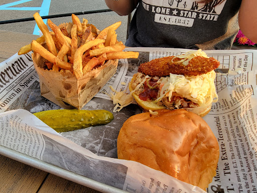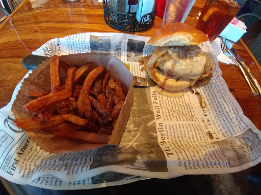 Read moreMy first impression was just popping in for a quick drink, and the beer and drink selection is pretty good. The major downside being that the beer menu behind the bar is almost unreadable, making it a little difficult to peruse your options. My other major qualm is that with no separation of bar and dining room, you can really feel like you are looming over people if you're just standing around. Came back for lunch and was really satisfied not only with the menu options, but service and food quality was great. I got the French onion burger, patty could have been salted more, but it was cooked well and the fries are delicious. I also tried the shrimp tacos, which were surprisingly also very good! It's a touch pricier than your average gastropub, but certainly nothing unreasonable. The place feels a little slow, but I'll attribute that to its newness, overall I enjoyed it and it's a great place to catch a game with a ton of TVs. The rustic feel of the place with distressed wood and barrels is nice, the lighting is good and ample seating both on the main floor and an upstairs backroom. Parking is easy with options in both the...
