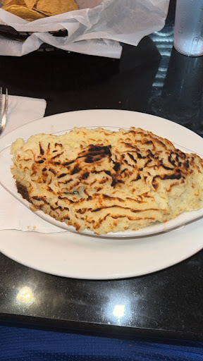 Secondly, the food was pitiful. The French Dip Swiss had some foul odor/tasting cheese coated on top of some very very thin strips of meat that looked white and grey. I was okay with swapping that for another meal and that was the Sheppardâs Pie. The Sheppardâs Pie was very bland, flavorless, burnt on top and swimming in some vile gravy. It was highly unappetizing to look at it, let alone consume. The wings were overcooked and burnt to a crisp and the tacos were also flavorless. Four meals and they couldnât get one of them right on a very slow day. On the flip side, the French Onion Soup and Onion Rings were barely above average, which brought my star rating up from a 1 to a 2.