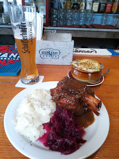 4 folks tried 4 different dishes, all were OK to very good. The Hungarian Goulash was OK. My wife had the curry spiced wurst which was excellent. My sister in law had the Das Schnitzel, also very good, the BIL had the Scheinsaxe was was terrific.
