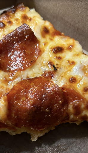 Upon entering the store, I couldn't help but notice that the cleanliness of the establishment left a lot to be desired. The tables were dirty and filthy and the overall appearance of the store was not up to the standard I expect from a reputable pizza chain like Domino's. The general tidiness of the place was lacking. Regrettably, the condition of the store seemed to extend to the food preparation area. The food, including my pizza, appeared less than appetizing. It was evident that attention to hygiene and cleanliness was lacking, further diminishing my confidence in the quality of the meal. As i received my pizza, I discovered a mosquito in one of the slices. ABSOLUTELY DISGUSTING. HEALTH CODE VIOLATIONS!! This was not only unappetizing but also raised concerns about the overall sanitation practices in the kitchen.