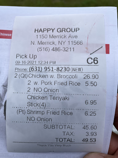 Read moreCalled at 4pm for a delivery order- they told me it would take 45 minutes. After an hour i called to see how much longer it would be- they told me 5 minutes- 15 minutes later i call back and ask where they are, they tell me another 5 minutes- ANOTHER 15 minutes later i call, they tell me "hold on, were going to call our driver..." after ANOTHER 15 minutes the restaurant calls me to tell me they never recieved my order and asked if i still want my food- apparently, according to whoever i spoke to on the phone, when you call the restaurant- your call is answerd by a telephone answering service and that they had never even recieved my order- this place used to be the best chinese food in all of merrick...not so...