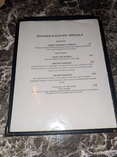 Read moreMy wife and I went at the urging of a friend for a date night. Hard to come by those these days. Boy, are we glad we chose to spend it at Anthony’s. The ambiance is perfect. Warm, quiet, friendly(we were there at 6:45pm last night, Friday).