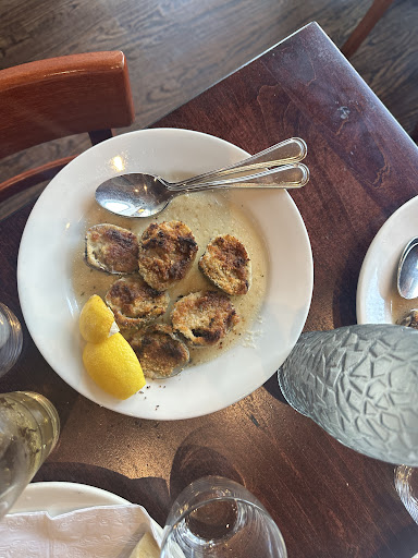 The complimentary bread that came wasn’t even warm…. We ordered a pie, half plain and the half onions and mushrooms. The cheese on the pizza …I’m not sure what it was but it was so gooey . (When but in the fridge the next day it was so bad) Mozzarella I’ve had at other brick pizza oven establishments were so much better. The pizza was also visibly burnt. Calamari was great, the clams and stuffed mushrooms needed more flavor and was burnt— a little crisp is okay but come on … I understand that we were the only family in the restaurant at the time BUT pay attention not to BURN food.
