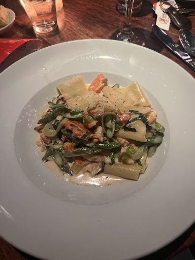 Read moreCame for dinner, busy restaurant, fast & attentive service. We ordered the grilled octopus & cosmos to start, it came within 10 minutes, so freakin good! Shared two salads, a Ceasar and the chicken Milanese, the Ceasar was well dressed with great croutons, the Milanese was seasoned to perfection, with huge crispy thin cutlets! Then we shared we the frutti de mare black linguini pasta! Deliciously rich pasta, cooked to a slight bite and chew, fresh shrimp, lobster claw meat, clams and mussels. We left a few mussels behind, they weren’t that great, but they can’t help that, overall it was really good! For dessert, ordered the bread pudding absolutely moist, warm chocolate chips were melted into each bite. Vanilla gelato on top yes please! I had to order the pistachio gelato, left nothing behind, just divine. The food here is really delicious. My only con is that the music was a little loud, you have to be real close to one another to talk and listen. I like the music, just wanted it to be a tiny bit lower in volume. If there was dancing, I think it would make sense, not the case here. Folks are just having dinner and trying to converse. Its industrial/contemporary chic decor is nice. Large furniture, sturdy comfortable chairs, good for group dinners. Definitely would come back, the food was so good, I have to try other things on the menu, they know what...