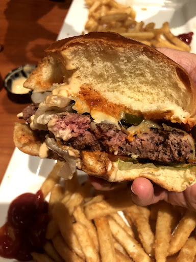 The waiter was nice enough to come around and ask if we wanted any dessert or anything else. I told him about the burnt food, and showed him as well. He apologized profusely and explained that perhaps the chefs were in a rush as it was close to closing time. He also stated that he’s aware this does not excuse the poor quality of the food. He brought this issue up to the manager/owner and he decided to deduct the cost of one burger.
