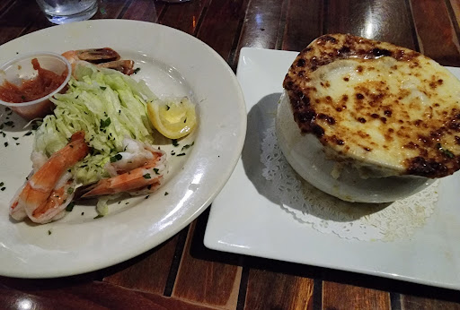 Read moreOverall was a nice time with a friend...The place is pretty loud but it's a bar atmosphere which carries over into the dining area. They didn't have Sangria but the bartender made one and it came out pretty good! The shrimp cocktail was decent. Atleast the shrimps were clean just not that big. The French onion soup was actually really good! It was a little chilly out so was perfect! The waiter was "new" and he wasn't very attentive... and the table next to us was having issues also with service. All in all ok just loud and more of a pub...