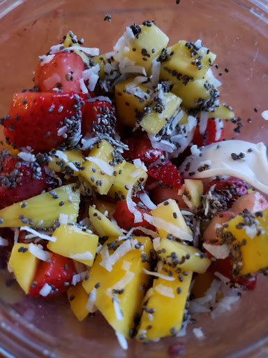 I’m just confused—why not just put it all together, especially since I’m paying extra for the honey? I get why the açaí is packed separately, but the waffles, fruit, and honey should come ready to go. Just wanted to bring this up because it keeps...